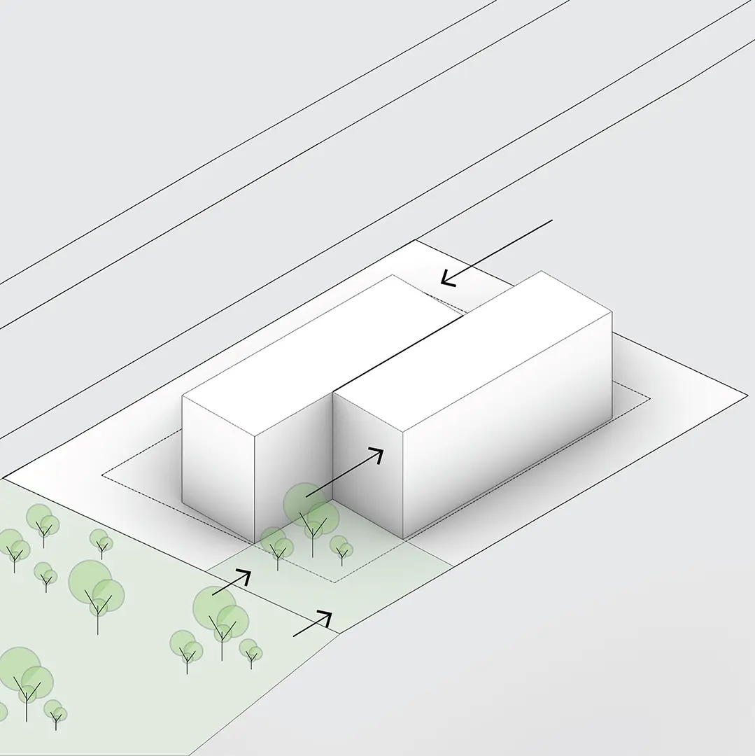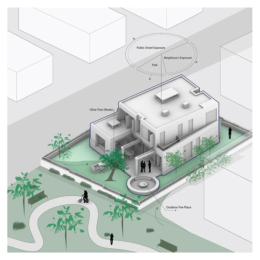 Ortakoy House concept revolves around a compact, functional massing that addresses both the plot's conditions and the surrounding environment. The overall form reflects a careful consideration of how the building interacts with its surroundings, providing natural light and ventilation while offering privacy.